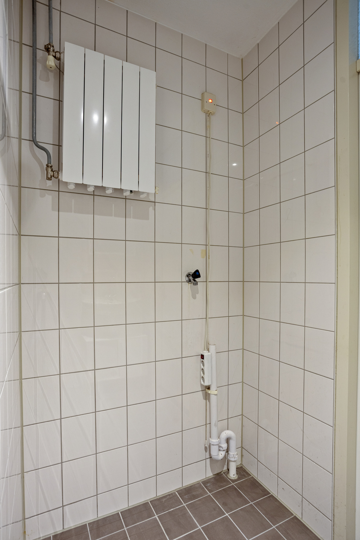 Derde verdieping: twee slaapkamers en badkamer met douche, wastafel en wasmachineaansluiting.