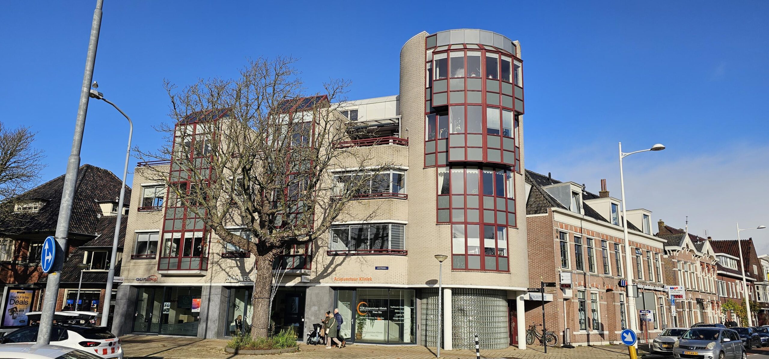 Aan de mooie Geesterweg, met aan de overkant de Grote Kerk, staat dit kleinschalige appartementen-complex waarin zich dit ruime appartement bevindt (ruim 100m2!).